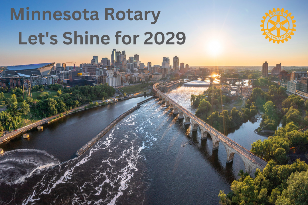 The 2029 Rotary International Convention Site Review team will be visiting Minneapolis/St. Paul, September 25-28, 2023. Join us for a Special All-Rotary Lunch & VIP Speaker Program. Thursday, Sept. 28 11:00 a.m. to 12:30 p.m. at Edina Country Club. This is big! We’re going to shine and show how enthusiastic we are that Rotary International is considering Minneapolis/St. Paul as the worldwide host of the 2029 Rotary International Convention. Registration was required.