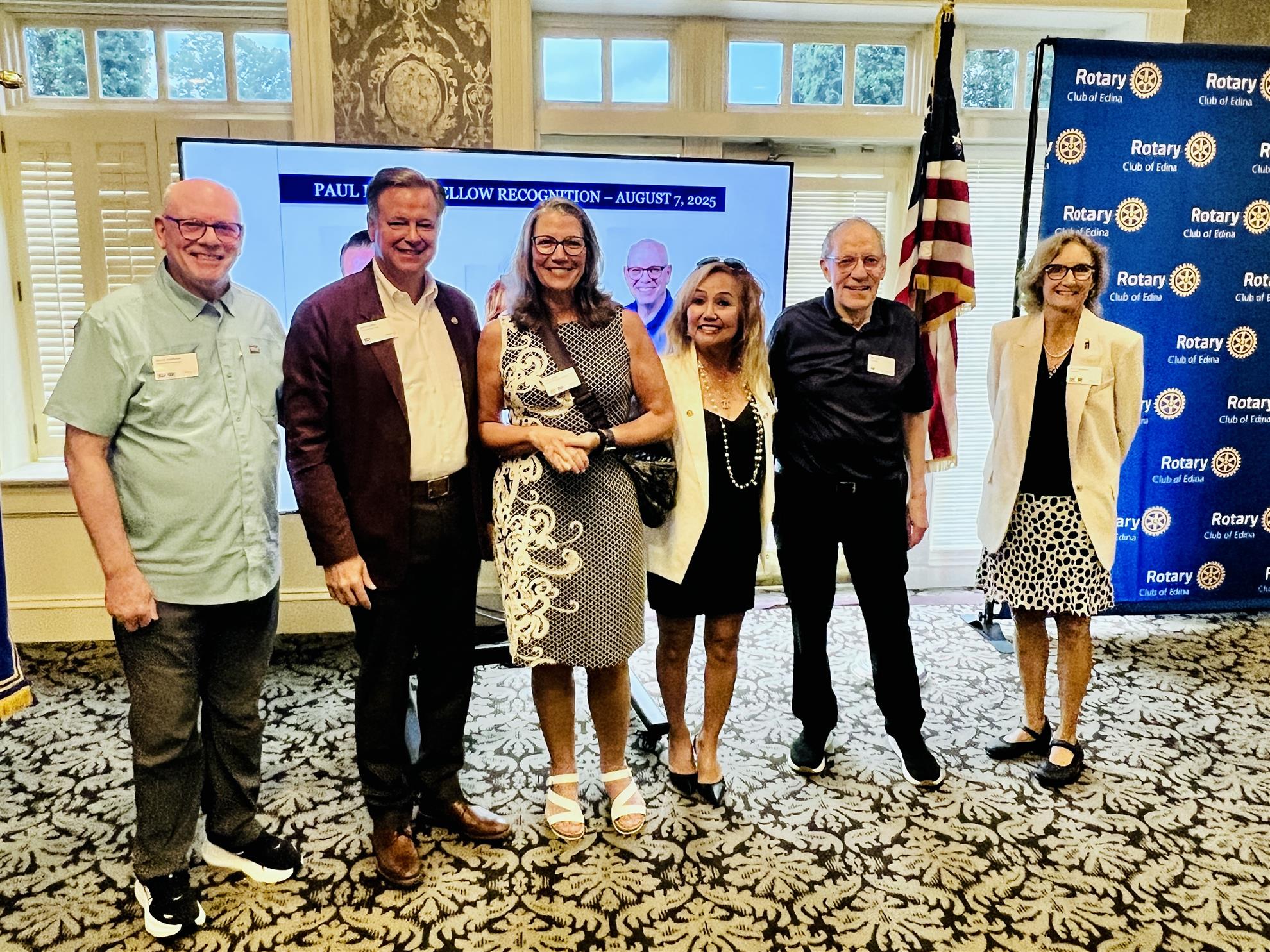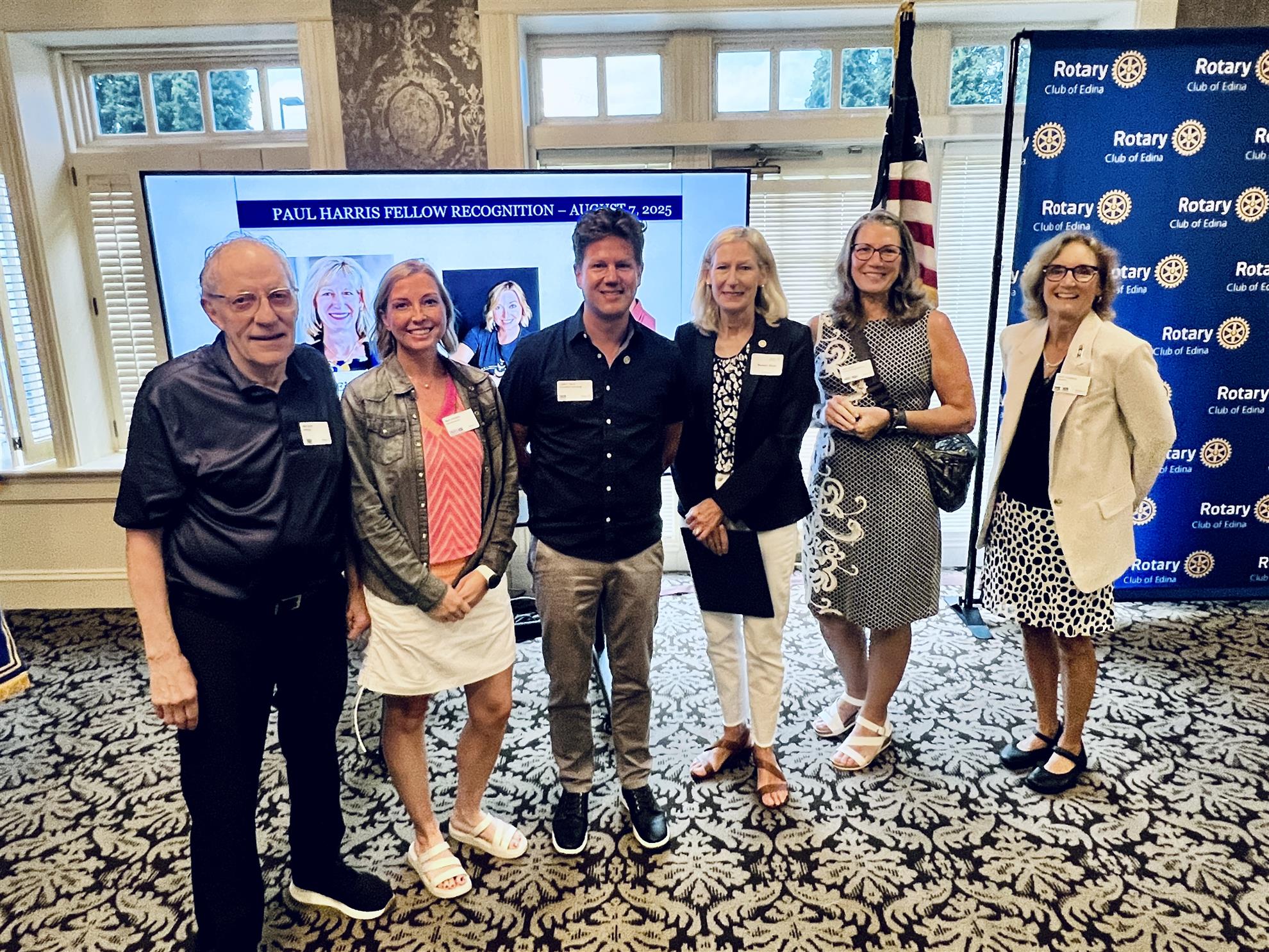At the August 7, 2025 Rotary meeting, six members received Paul Harris Fellow pins in recognition for their contributions to The Rotary Foundation (TRF).