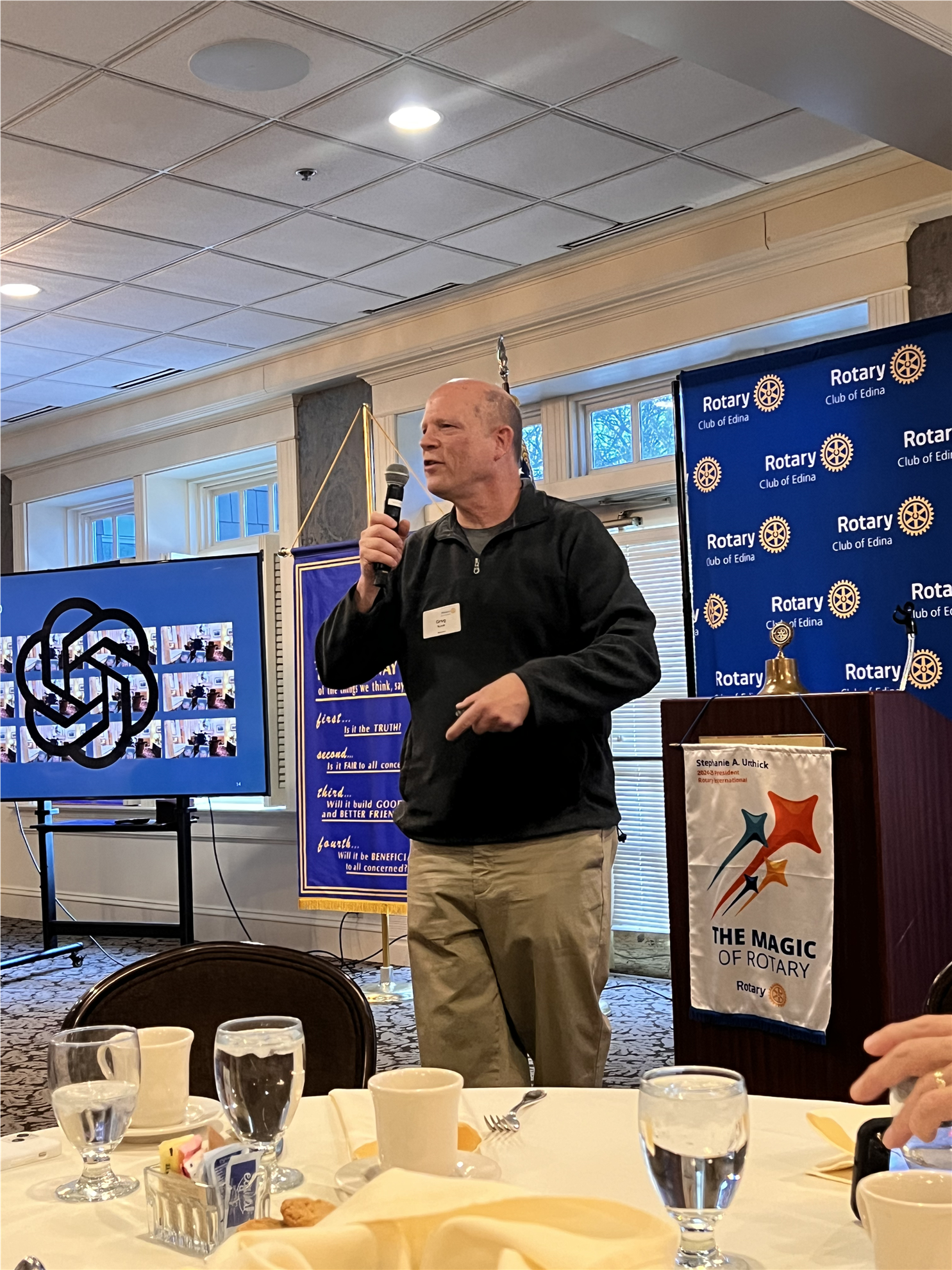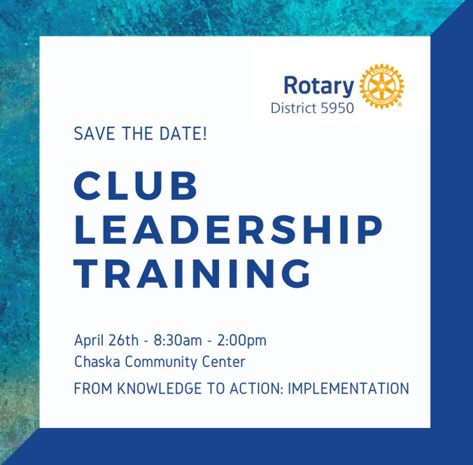 Mar 20 -- Speaker: Tim Mulcrone, District 5950 Polio Plus Mar 25 -- Zimbabwe Trip Begins Mar 27 -- Speakers: Tim Murray & Holly Callen, Bravo Zulu House Mar 31 -- EMRC Spring Plant Sale Orders Due Apr 15 -- Joint Meeting with EMRC Apr 17 -- No Meeting (EMRC on Apr 15) Apr 20 -- Eden Prairie Eco Expo Apr 26 -- District Leadership Training, Chaska Jun 21-25 -- Rotary Convention, Calgary, Magic All Around |